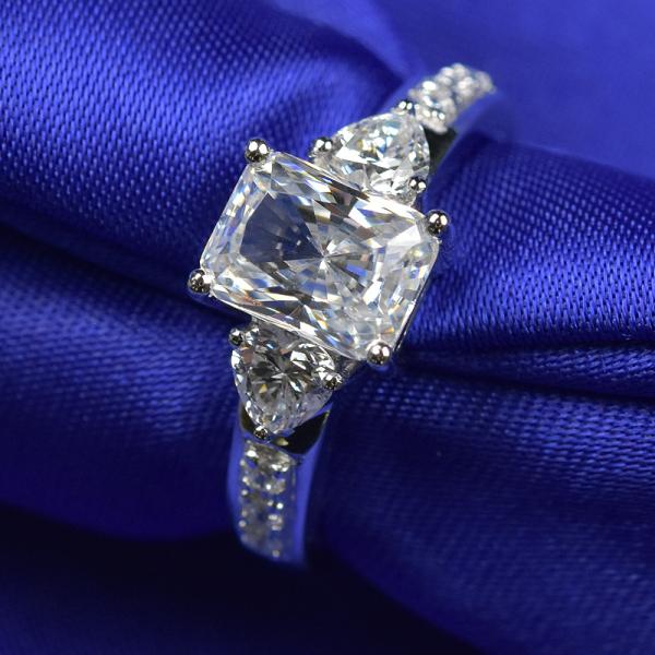 Customized Moissanite Diamond Rings Emerald Cutting 2cts With White Color Images |
